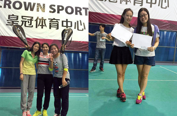 这一天阳光灿烂,大家早早地来到活动举办场地——皇冠体育中心羽毛球馆。放下东西,开始热身,有人“技痒”已经拿起球拍开始找场地找人练球了。