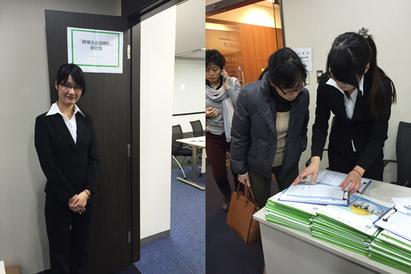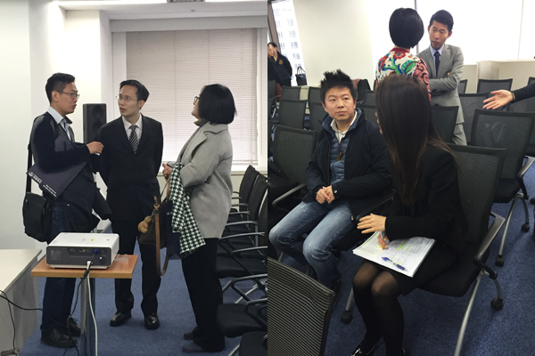 会议开始前上海的同事们有序安排客户签到并引导客户进入会场,与客户进行会前的简单交流。