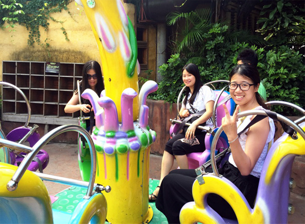 入园的第一站:童话王国。大家集体坐上了摩天环车,感受在空中的旋转,为接下来的活动热身。