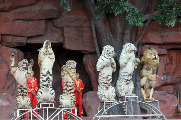 另一边,动物童话王国里的百兽之王则带来了精彩的表演。