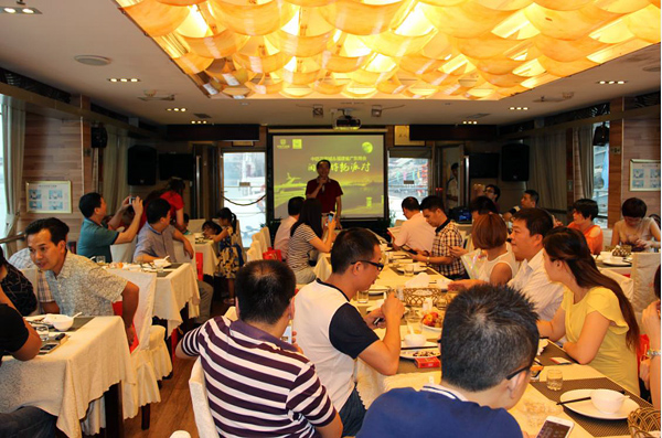 福州瑞豐的同事们同广东商会企业会员共聚一堂,倾听商会秘书长分享福州经济发展趋势,企业会员们互相认识,相互攀谈,气氛融洽。