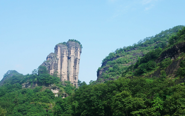 诸多景点中,导游特别介绍了玉女峰,此峰平地而起,蔚为壮观,更是武夷山对外的形象标志。