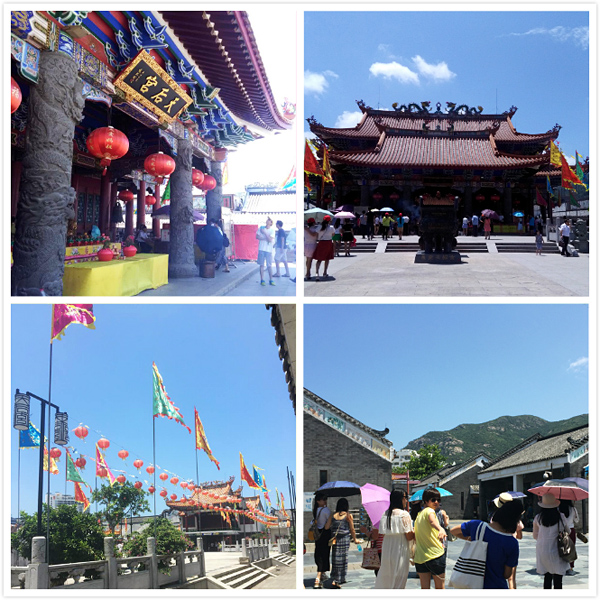 第一站到达巽寮湾旅游风景区天后宫。天后宫民俗文化街古朴高雅、充满渔村独有的文化气息,穿梭其间,更能体会到不同于快节奏大都市的独特魅力?;荻鹑诮忠苍谡馄扒?,以客家文化、广府文化、岱家文化及惠东渔歌文化遗产为背景主线,打造出一个融合天后宫祭拜、民俗风情、休闲购物功能于一体的岭南文化风格仿古街,大家吃吃逛逛很快就到了下午。
