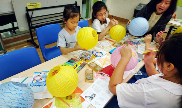 小朋友们专注地为灯笼加上自创的手绘图案,为自己的灯笼添上美丽的色彩。