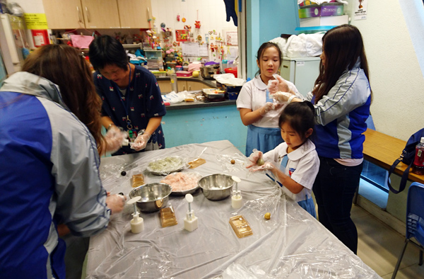 另一边大家都留心听导师的教导,瑞豐义工团协助小朋友制作冰皮月饼,其乐融融。