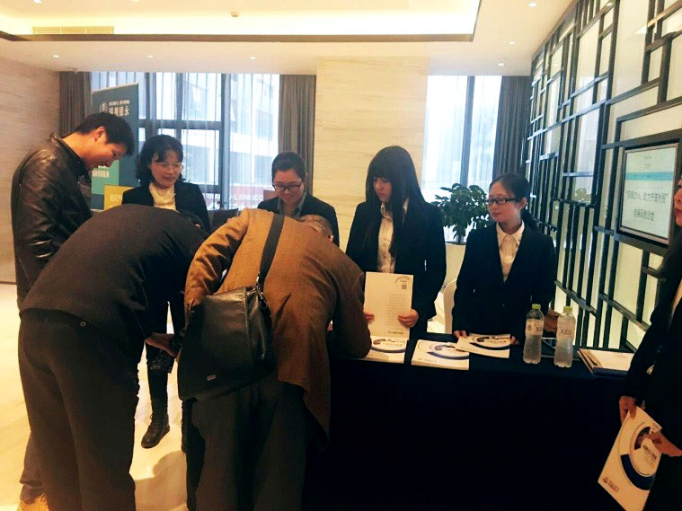 会议2点开始,下午1点半客户陆续签到入场,瑞豐德永宁波子公司团队与中信保团队分工合作接待到场客户。