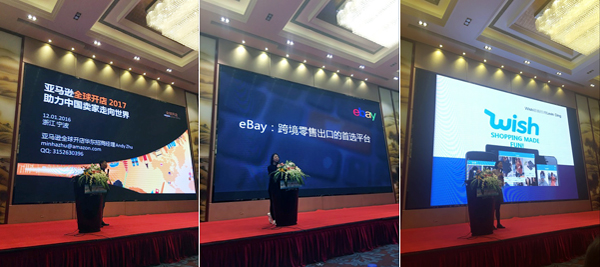 大会上eBay、Amazon和Wishd三大平台的首次同台亮相,吸引了大量人气,与会人员的热情和场面的火爆程度让主办方始料未及,临时在会场加了好几排座位。瑞豐德永集团宁波公司作为特邀嘉宾也参加了此次专题分论坛,并发表主题演讲,与在场的客户们分享了商标注册和品牌规划等内容。