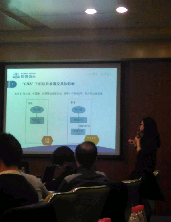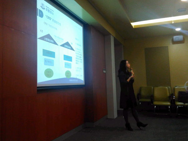 研讨会特邀瑞豐德永集团华北区经理孟庆坤女士担任主讲嘉宾。讲座就CRS的“前世今生”、 CRS下有哪些信息会被交换、CRS的具体影响以及如何成熟应对全球税务信息交换做了案例分享。