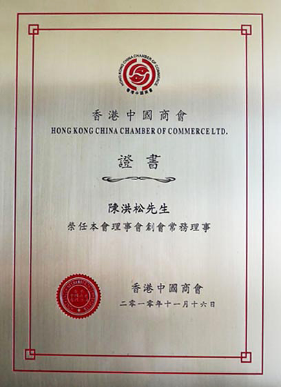 瑞豐德永集团董事长陈洪松荣任香港中国商会第二届理事会常务理事