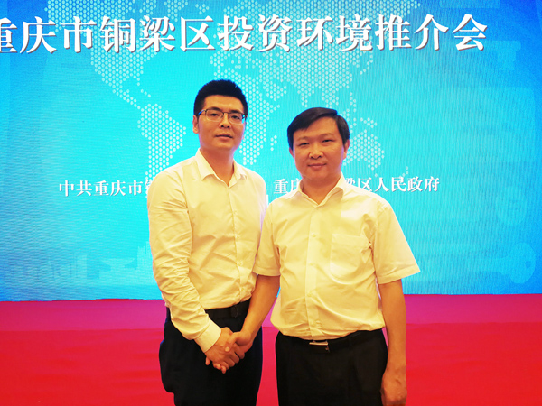 瑞豐德永集团投资总经理南炳琼先生与重庆市铜梁区区长常斌先生合影