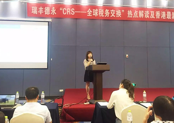 本次全球税务筹划研讨会是瑞豐德永举办的全国税务系列活动之一?;嵘希鹭S德永集团华东区域总经理、集团专家团队成员李洁女士详细解析了CRS的最新政策以及目前各国实施的情况,重点解读了CRS准则对高净值人士的生活以及投资带来的影响。