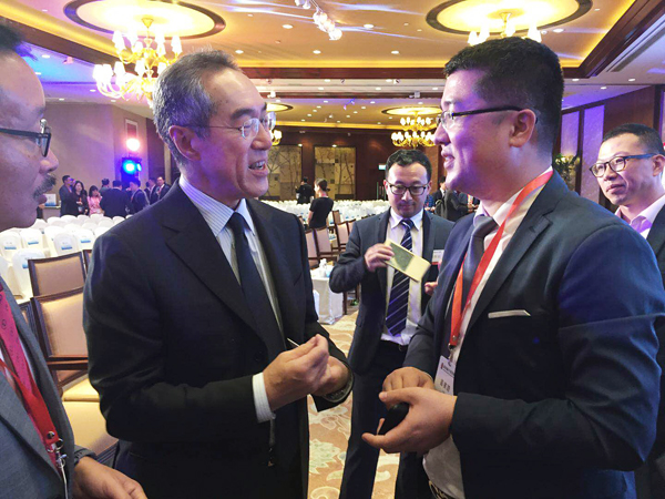 瑞豐德永集团总经理王宇先生与全国政协常委、香港江苏社团总会会长唐英年先生合影