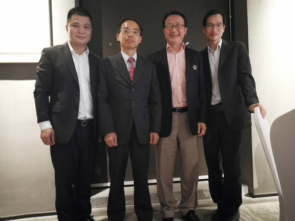 瑞豐德永集团董事长陈洪松先生与香港特别行政区政府驻粤办主任邓家禧先生(右三),香港特别行政特区政府驻深办主任邓月容先生(右一),香港太平绅士、前海香港商会首席会长林新强先生(右二)合影