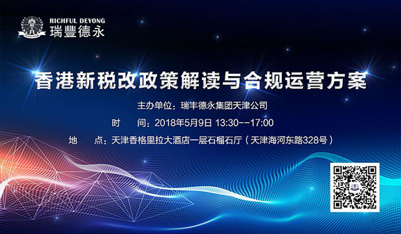 2018年5月9日,瑞豐德永将在天津举办“香港新税改政策解读与合规运营方案”专题研讨会,特邀专家为您全方位解读税改新政,从法律和税务的专业视角,真正帮助企业家理解新政背景下,实现合法合规经营的税务筹划正确之道。
