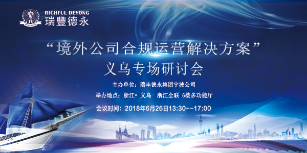 2018年6月26日,瑞豐德永将在浙江义乌举办“企业合规运营”专题研讨会,特邀专家为您全方位解读税改新政,从法律和税务的专业视角,真正帮助企业家理解新政背景下,实现合法合规经营的税务筹划正确之道。