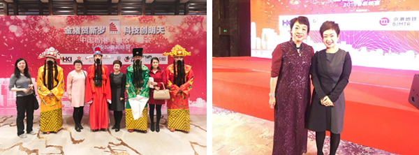 中国香港(地区)商会会长萧惠君女士(左)与瑞豐德永集团北京公司副总经理张春莉女士(右)在晚宴现场亲切交谈,共话发展