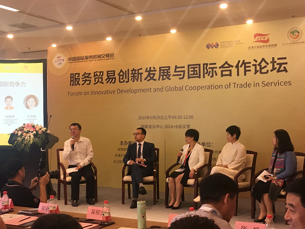 2019年5月29日,世界贸易中心协会、京津沪渝服务贸易联盟、长江经济带服务贸易联盟在国家会议中心举办了2019中国国际服务贸易交易会(简称“京交会”)“服务贸易创新发展与国际合作论坛”。