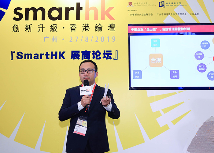 上午11时45分, Smart+科创企业对接会上,瑞丰德永CEO龚彦斌先生应邀发表了题为《合规经营是中国企业“走出去”的必由之路》的主题演讲,并表示瑞丰德永集团在21个国家47个城市2600多名专业人士,熟知当地法律法规、竞争制度等合规解决方案,正是企业“走出去”值得信赖的第三方合规服务供应商。同时,瑞丰德永一直以来致力于为粤港澳经贸交流搭建对接平台,深化粤港澳在金融、专业服务等领域的合作,助力加快推动内地企业“走出去”发挥香港“超级联系人”的纽带作用。