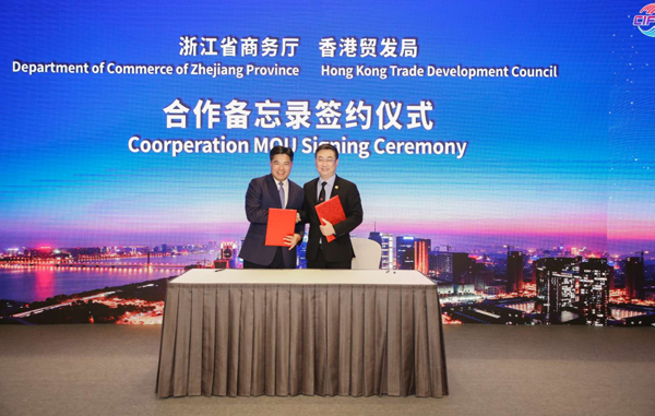 浙江省商务厅盛秋平厅长与香港贸发局中国内地总代表签署合作备忘录