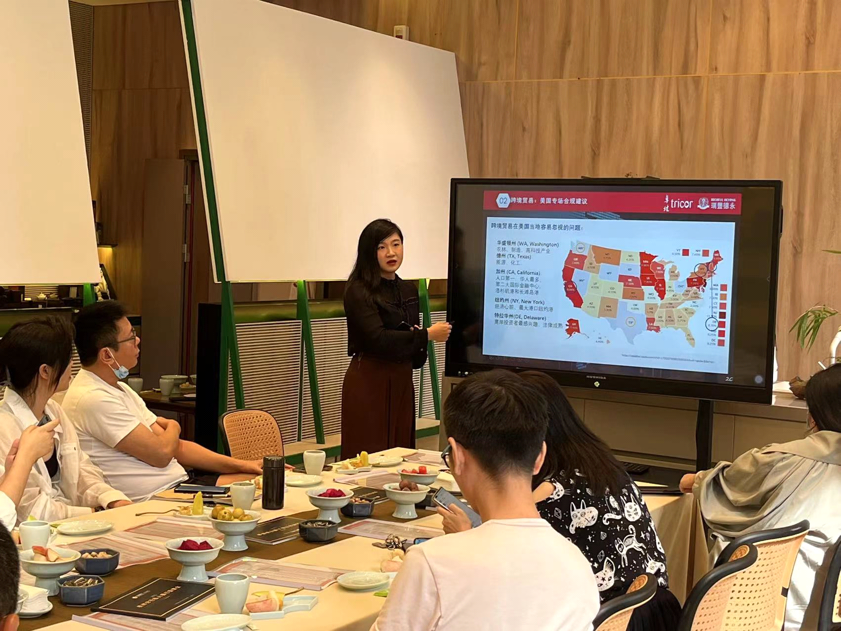 本次研讨会得到了宁波银行杭州分行的大力支持以及来自各行各业知名企业家的积极响应?;嵘?,主讲嘉宾之一的卓佳瑞丰德永杭州公司资深客户经理施伊涵女士以美国为例,针对跨境合规运营及跨境财税规划等问题,详细讲解了多种跨境业务架构搭建的可行性及优劣势,并辅以实际案例,进一步强调了合规运营的重要性。另外,她还分析了传统跨境贸易与跨境电商经营中的常见问题,并提出了具有针对性的建议,为美国公司后续健康发展提供了多样化的选择。