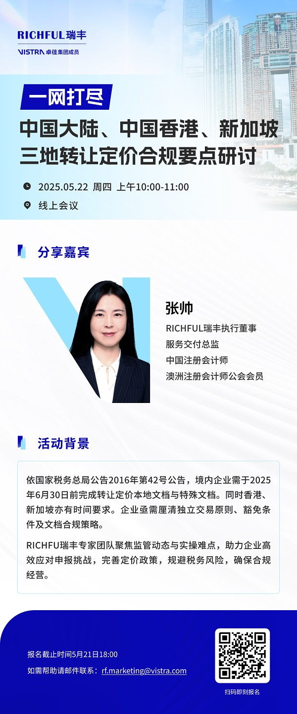 5.22直播预告 | 中国大陆、中国香港、新加坡三地转让定价合规要点研讨