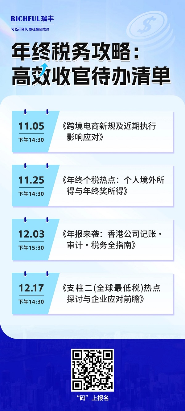 “年终税务攻略:高效收官待办清单”系列网络研讨会持续进行中,首场已圆满落幕,干货满满,好评如潮!第二场即将开启,助你系统梳理关键议题,为2025年稳健发展夯实基础。