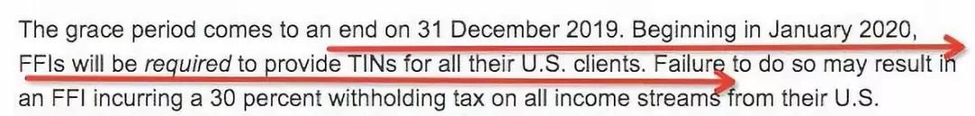 所有美国公民、美国绿卡持有人,以及常住美国的人士注意了:从2019年12月31日开始,美国国税局IRS,将最终结束其长期运行的《海外账户纳税法案》(FATCA“肥咖”条款)宽限期??硐奁谝坏┙崾?,只要你账户符合“美国人身份”(后文有详细解读),就必须提供美国税号(TIN),海外账户被查出没有申报,除了会面临高额??钔猓嘶Щ岜幻拦熬侄辰?,甚至面临刑事处罚!这意味着希望避免账户冻结的美国纳税人,现在只有不到一个星期的时间,来应对可能的后果。