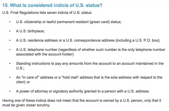 ③用美国护照在美国境外开户,或在开户时填写美国联络资料者;