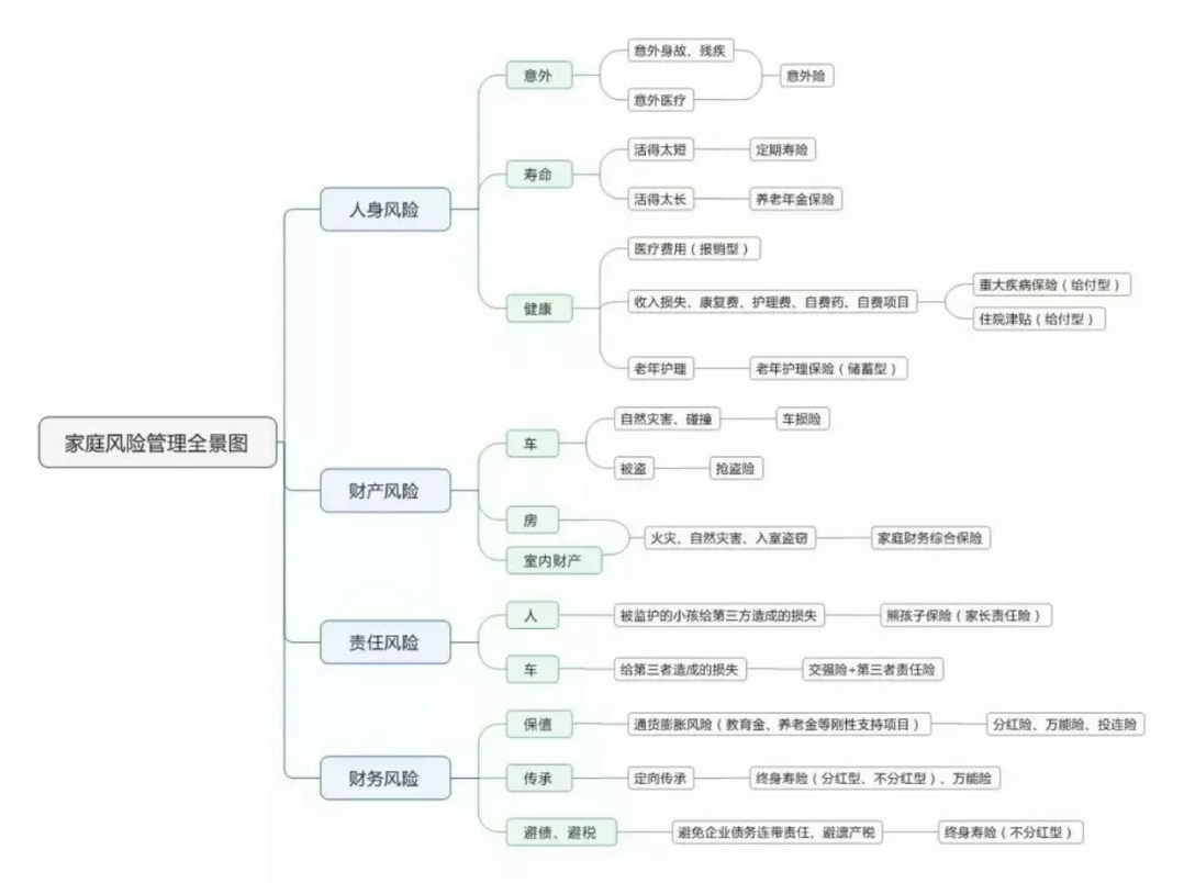 在我们了解保险功用之后,我们就要对我们的家庭风险进行全景解析: