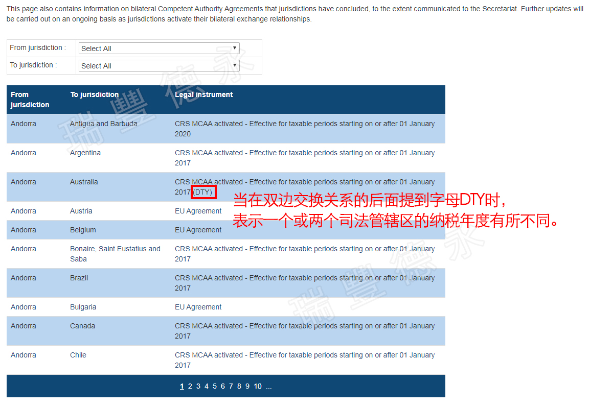 若要查询各成员之间CRS交换信息的生效或激活日期可在OECD官网查询