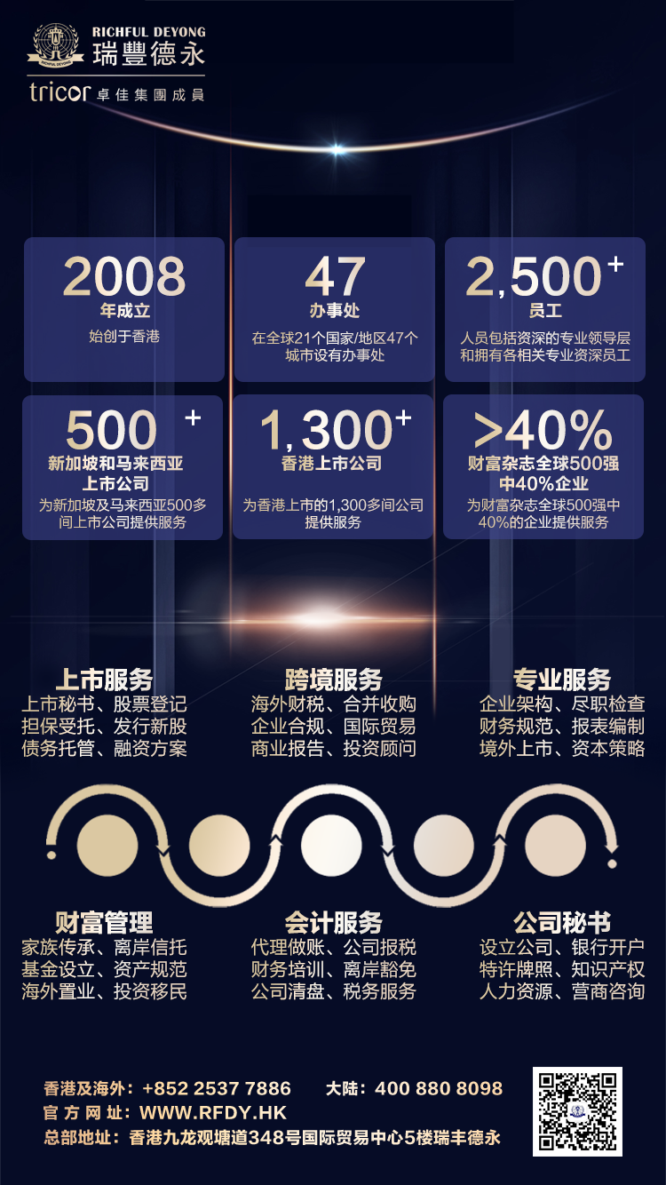 随着世界银行局势的收紧,国际反洗钱规定和众多多边协定的签订,开设境外银行账户变得越来越困难,瑞豐德永拥有多年开户经验及与香港银行有良好合作关系,香港公司及离岸公司最快可以做到一两星期就可以成功开户!这不仅仅能够给高净值人士带来多国家多地区的开户选择,更能为其提供全面的开户前期审核指导服务,使大家境外银行开户更高效。