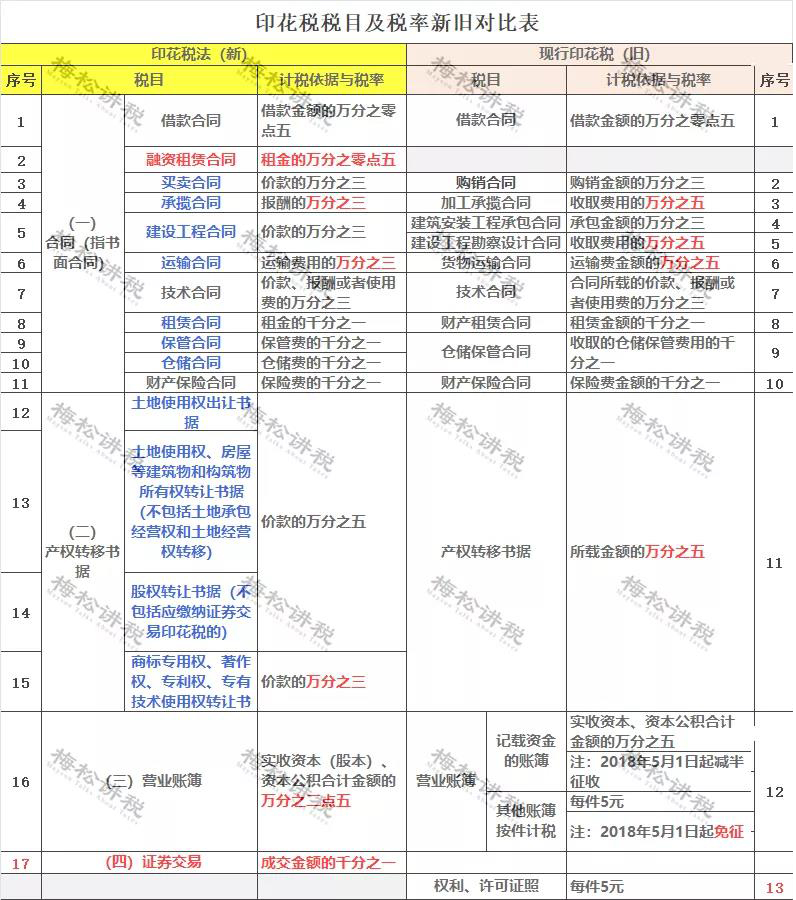 印花税降低了税率,比如商标权、著作权等就从万分之五降低到万分之三;