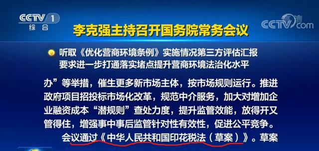 据央视新闻消息,十三届全国人大常委会第二十九次会议表决通过多项法案及两项决定。其中包括印花税法,这部法律总体上维持现行税制框架不变,适当简并税目税率、减轻税负。