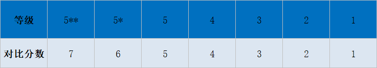 (2)得分为五个等级[1-5级],第5级为最高等级,获第5级的考生中表现最佳会获得[5**] ,随后表现较佳的则以[5*]表示,表现低于第1级的会标示[不予评价]。
