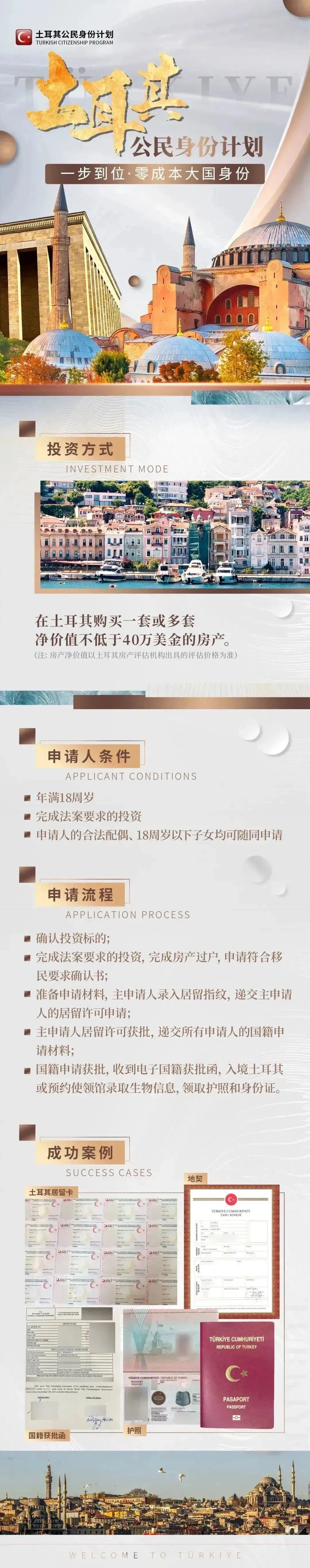 投资入籍法案颁布,海外人士购买100万美金房产可获得土耳其公民身份。