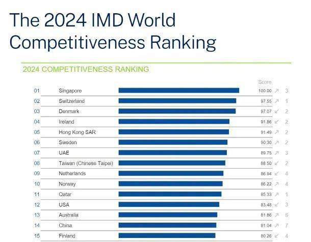 新加坡拥有高度发达的自由市场经济,根据今年6月18日瑞士洛桑国际管理发展学院(IMD)发布的《2024年全球竞争力年报》,新加坡凭借卓越的表现,在全球最具竞争力国家的排名中荣登榜首,成为全球最具竞争力的经济体。