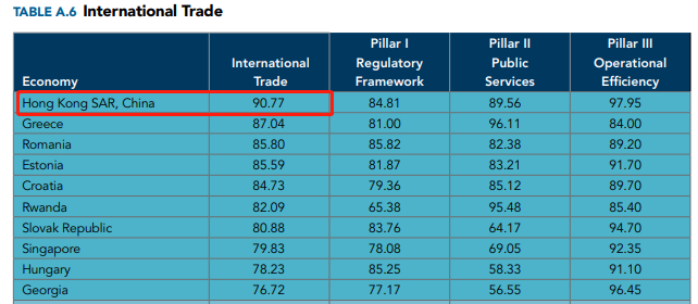 在此次全球金融中心指数排名中,香港的营商环境排名全球第四。根据世界银行集团(世银)10月3日发表的最新《“营商环境成熟度评估”2024报告》,香港在50个经济体中属表现最好的十个经济体之一。