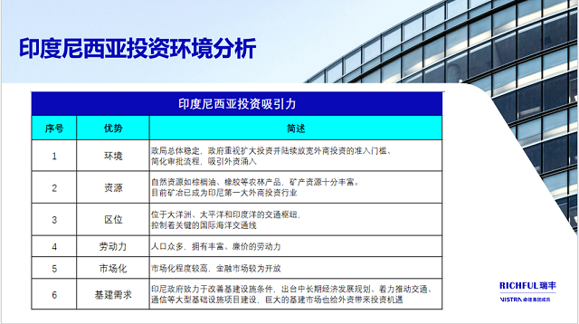 作为有资深的中企全球化发展一站式专业服务机构,RICHFUL瑞丰可竭诚为您提供出海印尼全方位的支持与定制化解决方案,以确保您的投资项目顺利展开,实现预期的商业目标。