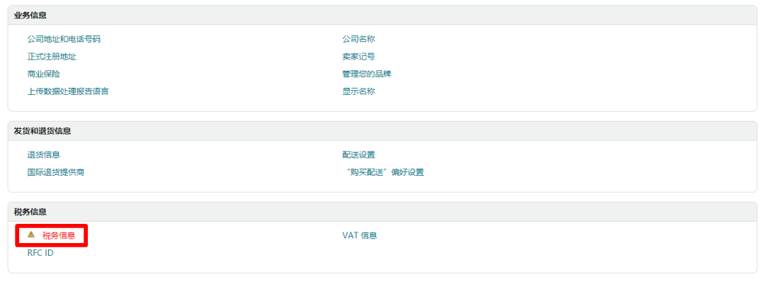 2、登录亚马逊卖家平台,点击“设置 > 账户信息 > 税务信息 > 税务信息”,找到验证入口。