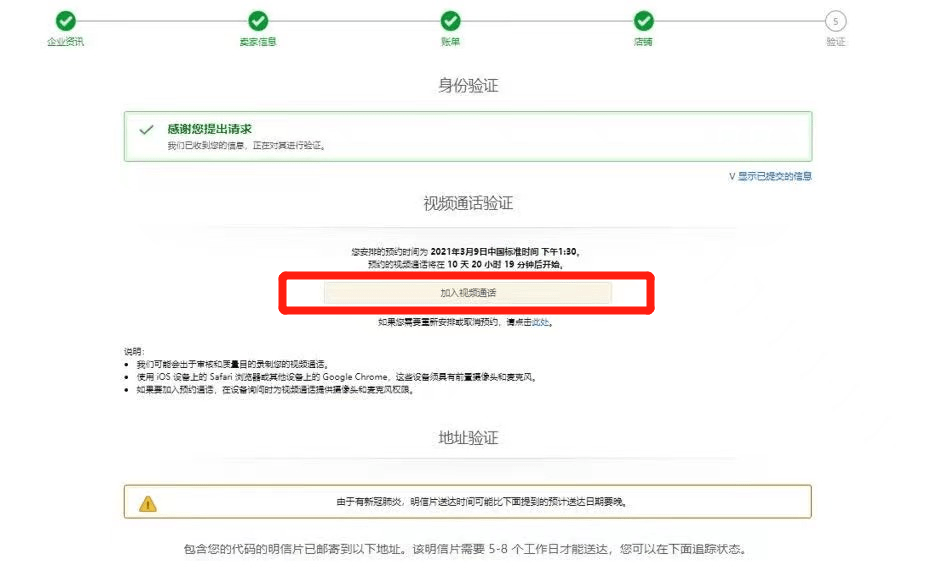 当您完成所有信息填写后,会进入资质审核环节。您可能会遇到身份验证,视频验证以及明信片地址验证。