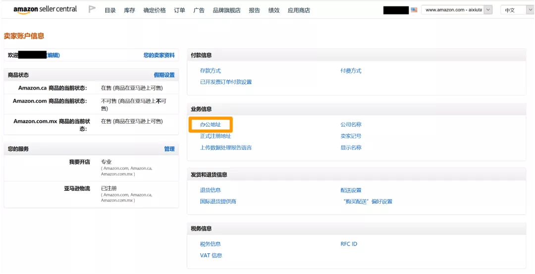 2.2 如果您不确定自己卖家平台中的地址,可通过如下路径查看:卖家平台 -> 卖家账户信息 -> 查看业务信息中的办公地址