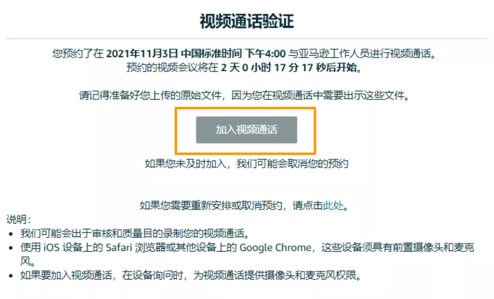3.3 在视频验证过程中,您若错过原先预约时间而未出席,您的卖家平台界面将会查看到相应提示。请您重新预约新的时间,并准时出席