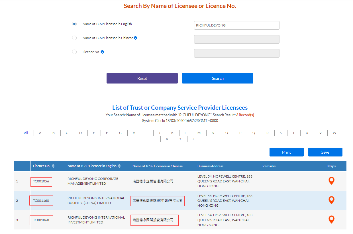 瑞丰德永 【信托或公司服务提供者牌照】 三张牌照 香港公司注册处查册: