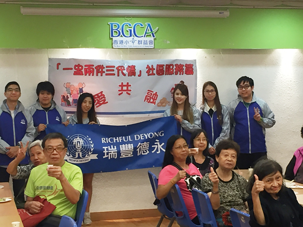 年长一辈都喜欢到茶楼饮茶吃点心,但能吃到人手制作点心的茶楼都已经越来越少见。为了让长者们能重拾昔日茶楼的回忆,瑞豐德永继续赞助小童群益会经费,并派出义工团协助制作点心,并和小朋友合力为长者们送上一点心意。