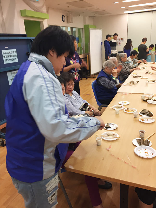 长者们都吃得津津有味,义工团都不忘为他们再次添上点心。