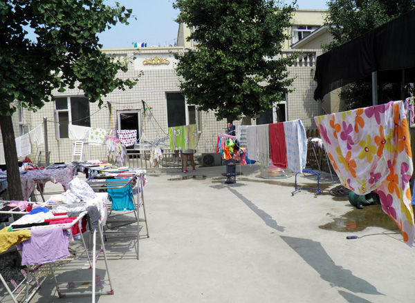 在经过登记、清单物品、洗手等环节我们才走入内院,看到孩子们晒洗的衣物,有些凌乱却十分干净。