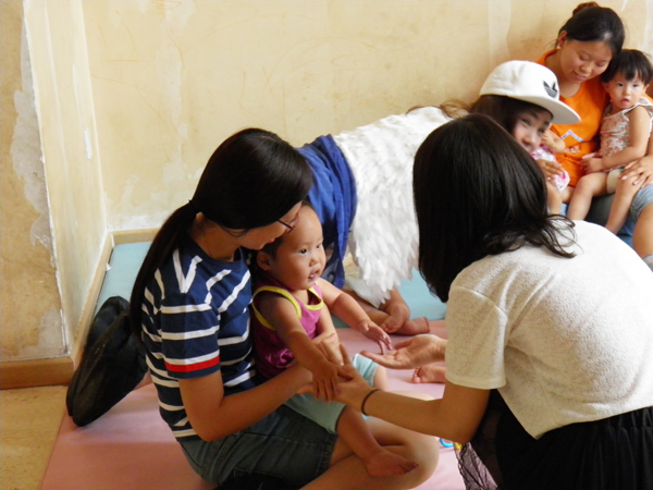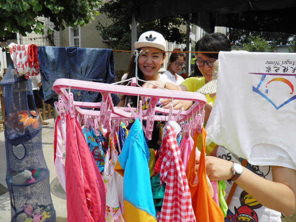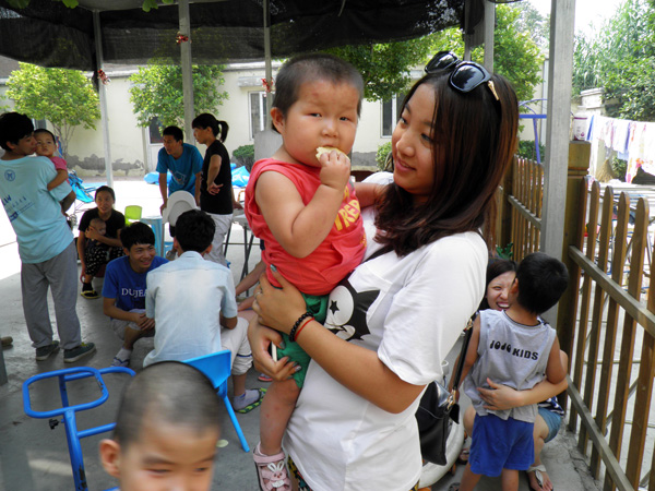 工作人员告诉我们说:“因为是周末所以来的义工会比较多,工作日的时候这里的工作人员平均1个人要照顾7个孩子,只有到周末的时候会稍微好一点。”也许是因为环境比较特殊,这里的孩子对我们没有一点陌生感,很快就能和大家玩到一起。