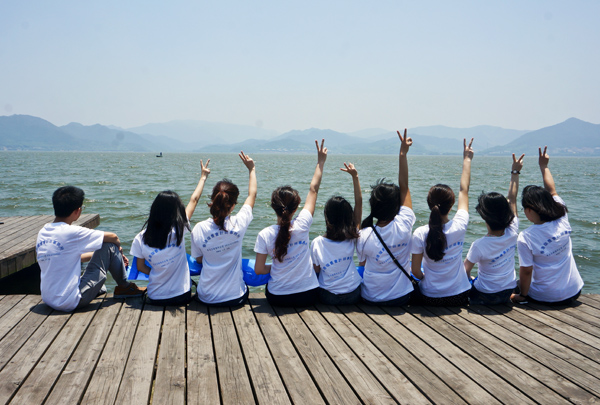 山坡上的芊芊细草滋成一片密密的厚发,林带上的淡淡绿烟凝成一堵黛色长墙。天上的云,远处的湖,还有地上欢快的人们儿,这是一个充满了热情、爱心、青春和正能量的团队,正代表着瑞豐蓬勃向上的精神气儿!